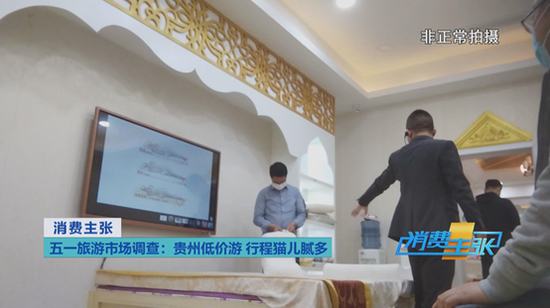 面对如此诱人的优惠,不少游客动了心。最终,有两人购买了上万元的乳胶制品。此时,这个团的新导游也从贵阳赶了过来,不过她告诉游客们,除了已经去过的三个店以外,行程中还会有购物店。