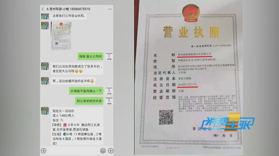 为了证明自己说的话,导游小敏还发来了单位的营业执照,执照上显示,公司名称是贵州易程国际旅行社,2018年成立。