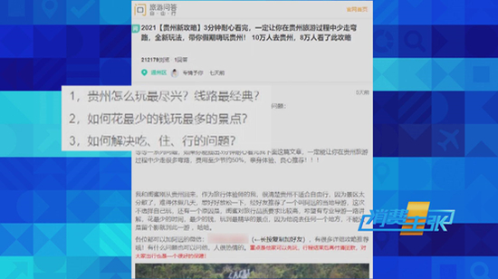 记者打开首页的一个链接,文章详尽生动的介绍了在贵州的一次旅行经历,图文并茂,下面还有问答、跟贴和互动,让人感觉实用性非常强。记者发现,不少攻略的最后都会留下导游的手机号。比如:这篇攻略里推荐的导游叫佳佳,这篇攻略里推荐的导游叫小敏。
