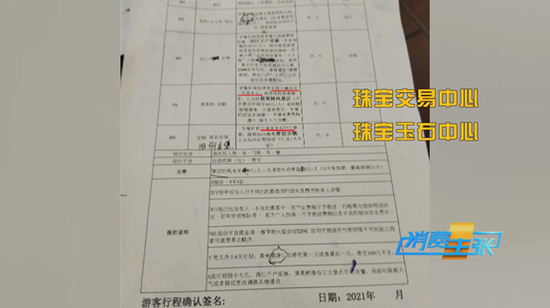 随后记者交了团费540元,对方提供了行程单,并拿出了早已准备好的合同。记者仔细察看行程单,发现在后两天的行程中,出现了珠宝交易中心、珠宝玉石中心的安排。