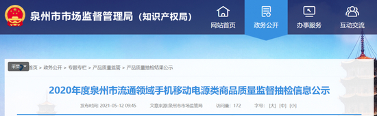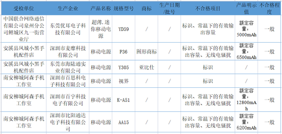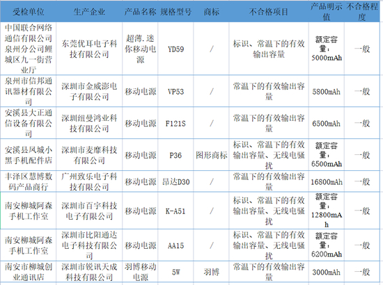 14批次充电宝不合格 标称商标涉及“亚比仕”“羽博”等