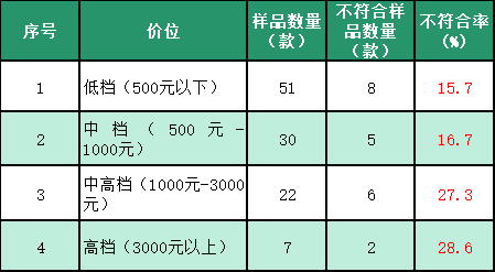 本次比较试验发现,把潮牌印花T恤样品按价格分为四个档次后,不符合率差别并不大,很多价格档次较低的样品综合质量较高,而价格档次较高的样品同样存在使用寿命、纤维含量不符合标准要求的情况。