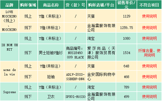 ▲标称“LOVE MOSCHINO(线上)”“MOSCHINO(线下)”“acme de la vie”“Supreme”。
