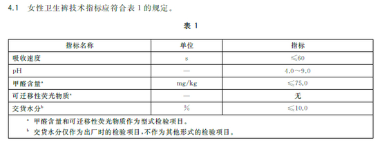 其实安心裤也有自己的标准,于2021年6月1日正式实施的GB/T 39391-2020 《女性卫生裤》中,对吸收速度、pH、甲醛含量、可迁移性荧光物质等均有相关要求,以上两个标准对甲醛和可迁移性荧光物质的要求相同。