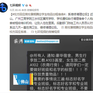 【#校方回应高校暑期腾空学生物品出租宿舍#:系维修清理垃圾】近日,广东佛山。广州工商学院三水校区黄同学称,学校通知自行清理宿舍个人物品,怀疑宿舍被租给培训机构,让别人住在里面。后勤部门陈姓工作人员否认对外出租,称系这几天一直在搞卫生,维修清理垃圾。