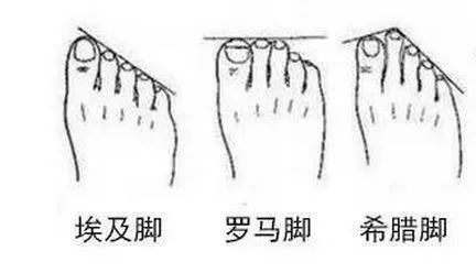 一般来说,“埃及脚”比较适合穿着偏向一边的斜尖头鞋或斜头鞋。“罗马脚”可以选择鞋头偏宽的方头鞋或圆头鞋,尽量避免尖头鞋款。“希腊脚”比较适合尖头鞋和杏仁头鞋,尽量避免穿鱼嘴鞋,否则就可能发生第二根脚趾露在鞋头外的小尴尬。