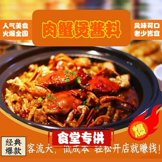 当用重口味的调味料进行调制后,以肉蟹煲的菜式端上桌,所有的食材都分不清彼此,齐齐地展示出金灿灿、诱惑食客的模样。调料品能掩盖食物的不良味道,调制出原本属于食材的鲜味,配上百搭的辣味,形成独特的甜辣口,最大程度地刺激唾液分泌,促使食客更快地吃下更多的食物。
