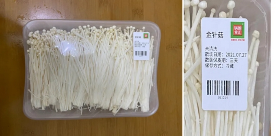 素菜中,售价7元一份的金针菇实在是太贵了。而更令《消费者报道》惊讶的是,这份采购于8月27日的金针菇产品,包装标签上标注的散装日期为7月27日,散装保质期为三天。