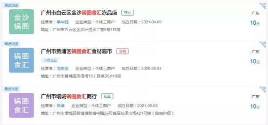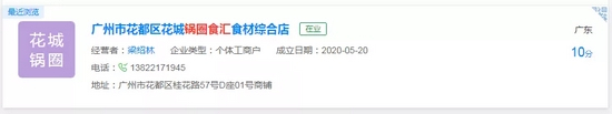 相比郑州、武汉、苏州等加盟店数较多的城市,广州市内大约只有三到四家锅圈食汇的门店,天眼查官网显示,位于黄浦区的一家门店已注销,白云区、增城区、花都区各有一家门店显示“在业”。