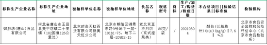 近日,北京市市场监督管理局组织抽检了糕点(月饼)食品228批次样品,不合格样品1批次。抽检发现,标称御厨坊(唐山)食品有限公司生产,北京时尚天虹百货有限公司新奥天虹分公司经营的老北京豆沙月饼(京式提浆类),酸价(以脂肪计)(KOH)不符合食品安全国家标准。