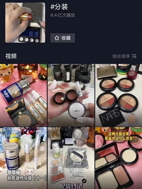 在抖音这类短视频平台上,“沉浸式”制作分装小样的视频总是能吸引众多消费者围观。“用一半就不用了的粉底液,分装完了省好几百”“口红用到底,不要扔,这样做就不浪费了”等文案随处可见。在淘宝等多家网购电商平台上,不但售卖分装工具的店铺异常火爆,就连销售分装化妆品的店铺也颇受欢迎,部分淘宝商家月销量高达200+到300+。