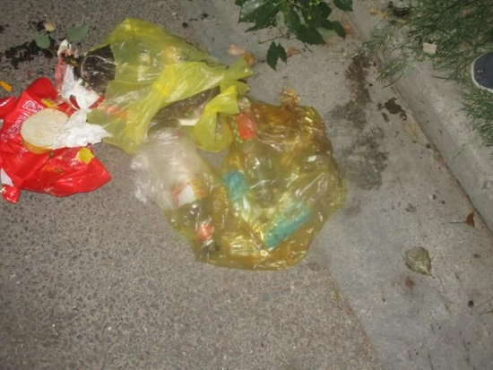 “谁从楼上扔了一袋垃圾下来?”差点被高空抛物砸中的居民汤先生惊魂未定,走近一看,居然是两袋生活垃圾,其中还有两个玻璃瓶和一个金属罐。