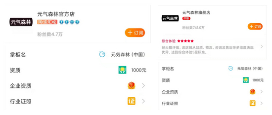 元气森林的一家淘宝店铺