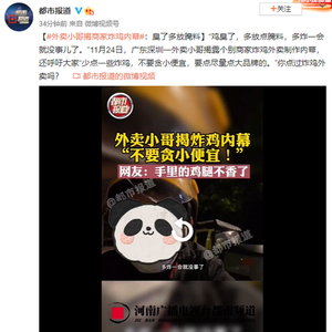 【#外卖小哥揭商家炸鸡内幕#:臭了多放腌料】“鸡臭了,多放点腌料,多炸一会就没事儿了。”11月24日,广东深圳一外卖小哥揭露个别商家炸鸡外卖制作内幕,还呼吁大家“少点一些炸鸡,不要贪小便宜,要点尽量点大品牌的。”你点过炸鸡外卖吗?