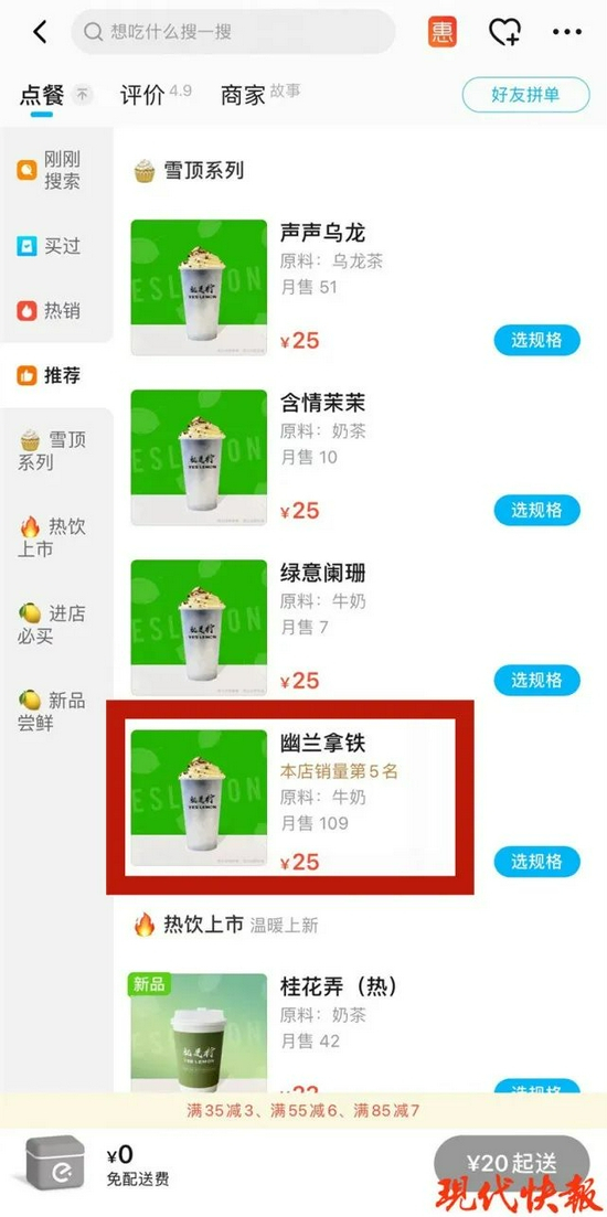 工作日的下午6点,南京某奶茶店的门前就已经排起长队,店门口的菜单上,金牌复刻——“幽×拿铁”“××乌龙”吸引不少顾客前来排队购买,这个时候站到队尾开始排队的话,大概要等上一个小时才能喝到这杯复刻版的幽兰拿铁。