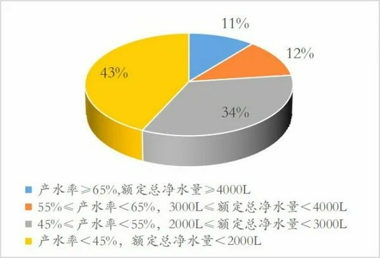 白雪告诉记者,根据行业调研,当前市场上的净水机产品,净水产水率低于45%的大约占市场份额的38%,净水产水率45%—55%的产品占市场份额的42%,净水产水率高于65%的占市场份额8%。新版净水机水效标准实施后,市场上的净水机产品最低必须满足3级水效要求,这将淘汰市场上现有40%以上的产品。