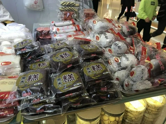 没多久,一对上海中年夫妇上前,准备买橘红糕。丈夫细心看了看包装上的生产日期,“9号生产的,今天12号了”。“保质期10天,9号生产、10号上市,还有很久的。”营业员解释。夫妇俩付钱结账走了。他们后面,另一位顾客也在顾虑生产日期的事,看她纠结,营业员转头从柜台最底下翻出另一包橘红糕,扔到台上说:“喏,给你10号的。”