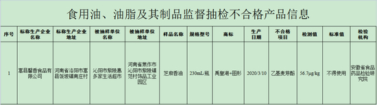 (三)河南省焦作市沁阳市紫陵惠多家生活超市销售的、标称河南省洛阳市嵩县馨香食品有限公司制造的芝麻香油,经安徽省食品药品检验研究院检验发现,其中乙基麦芽酚检测值不符合食品安全国家标准规定。河南省洛阳市嵩县馨香食品有限公司对产品真实性提出异议,河南省市场监管局核查后对其提出的异议不予认可。