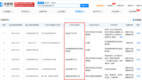 据国家市场监管理总局官网显示,不老神营养餐并未拥有药品、保健食品的批号,该产品类型为谷物类固体饮料。浙江不老神也仅有食品经营许可证及食品生产许可证。
