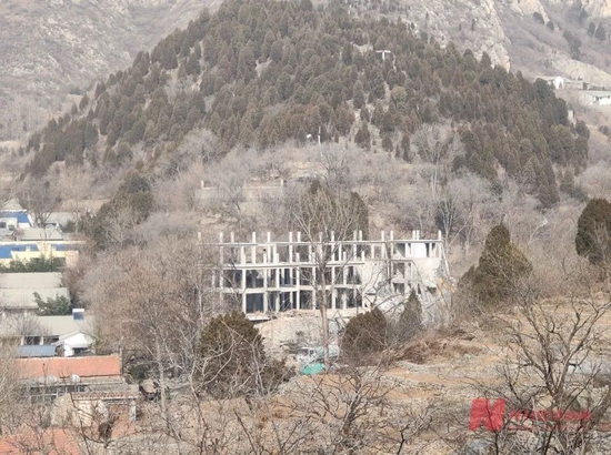 天井峪村两侧的山岗上依旧分布着多处已经建成的别墅类建筑,因为封锁而已经停业,尚不知后续是否会继续拆除。