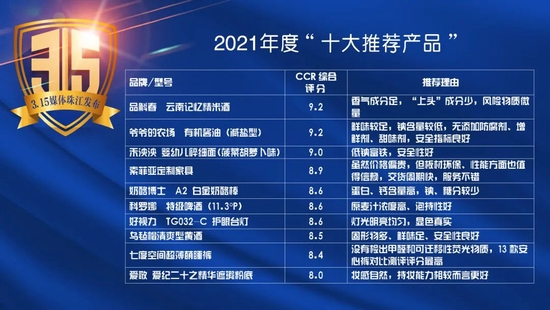 主办方整理过去一年里发布的各类测评报告,给大家带来非常实用的产品榜单,让大家可以更放心地选购。根据CCR评价体系,将高于国家标准或欧盟标准,综合评分高于8分且综合排名靠前的产品筛选列入2021年度“十大推荐产品”;综合排名靠后的产品筛选列入2021年度“十大不推荐产品”