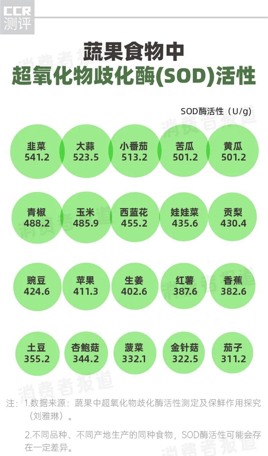 酵素SOD酶活性远低于新鲜果蔬,修正、多燕瘦垫底