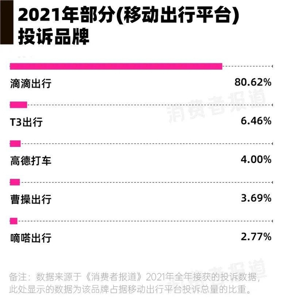 如今网约车企业遍地开花,滴滴、曹操、T3、高德打车等平台已成为消费者出行的选择之一。若想要在网约车行业争得一席之地,其服务质量和口碑变得尤为重要。《消费者报道》整理的投诉数据显示,滴滴出行投诉量最多,占据移动出行平台投诉总量的80.62%。其次是T3出行、高德打车、曹操出行和嘀嗒出行。其主要投诉内容为司机服务态度恶劣、未准时达到预约地点、司机要求乘客线下交易、空载计费、实际费用与预计费用差距过大等。