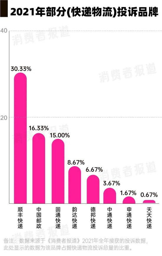 一直以来,快递物流的服务屡遭消费者诟病。《消费者报道》整理投诉数据显示,顺丰快递、中国邮政、圆通快递、韵达快递、德邦快递的投诉总量占据前列。