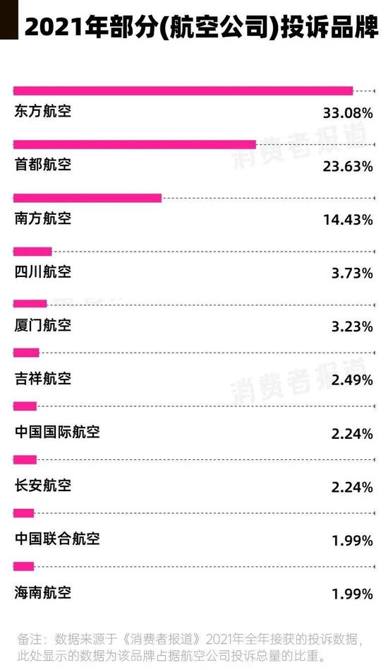 数据显示,《消费者报道》在2021年接获投诉涉及量最多的是东方航空、首都航空、南方航空,主要问题是退改签困难。其中,有不少消费者受防疫政策影响,在非自愿的情况下申请退票,但最终被航空公司以各种理由拒绝退款退票申请。