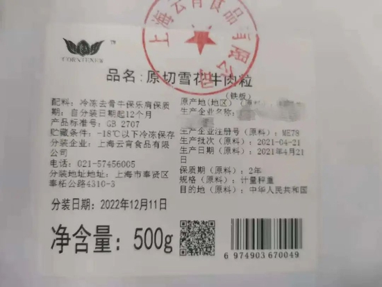 4月21日,市场监管部门接市民投诉,反映其团购到“未来”牛肉,分装日期标注为2022年12月11日。奉贤区市场监管局第一时间开展核查。