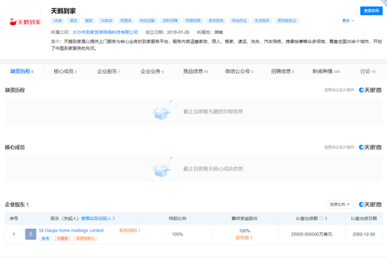 而根据天眼查的信息,五八到家有限公司法定代表人是曹继忠,天鹅到家的大股东仍然是 58 到家。