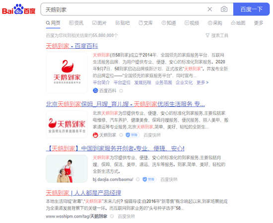 2020 年 9 月,在 58 同城私有化退市的同时,其到家业务被分拆出来,以全新品牌 “ 天鹅到家 ” 进行独立运营。