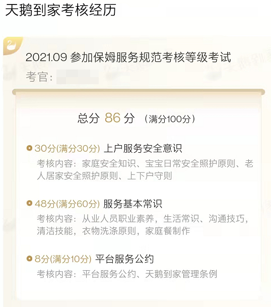 她说自己从没做过保姆,也没经过任何培训,交了一笔钱给公司后,通过线上培训,工作人员就能包过考试。
