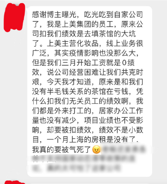 韩束员工爆料:韩束内部员工绩效都被扣光来填茶馆的坑。