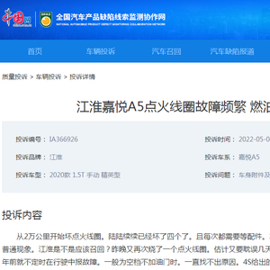 记者随即联系了江淮汽车客服,对方称并未出现过江淮嘉悦A5车型点火线圈问题的投诉。然而经过记者调查发现,在网络投诉平台上,却频繁出现有关江淮嘉悦A5点火线圈故障的投诉,且大部分车主们均反馈,江淮官方对故障原因避而不谈。在质保期内只更换不告知故障原因的做法令车主们颇为不满。