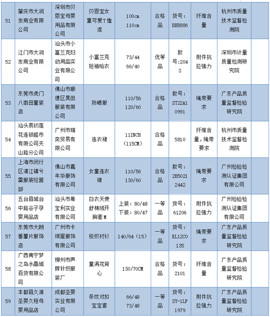 “嘟啦啦”“比比乐”等59批次童装不合格!