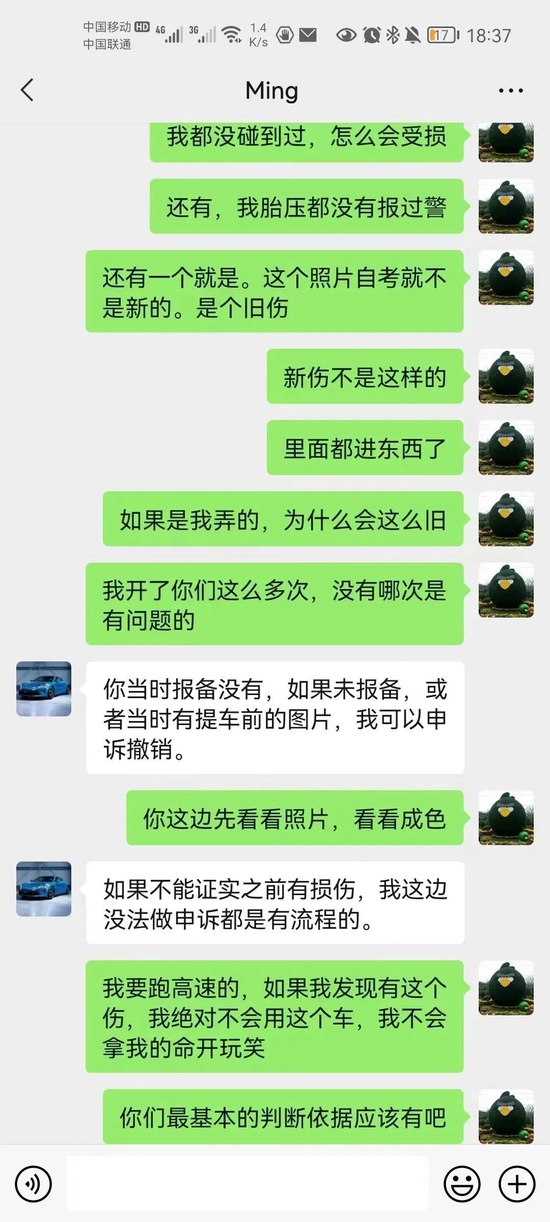 对于高先生的疑问,租赁公司客服人员坚持认为“如果不能证实之前有损伤,则没法申诉”。
