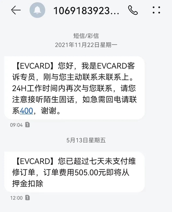 武汉男子归还EVCARD共享汽车10天后,收到短信称租车期间轮胎被划伤,被扣500多元