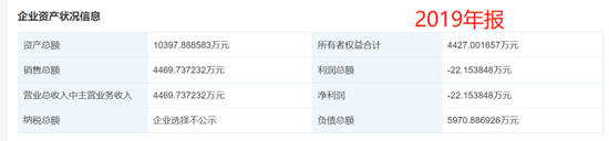 《消费者报道》查阅该公司历年年报发现,该公司经营情况堪忧。公司已公开的2013年、2014年、2019年及2021年企业资产状况信息显示公司均处于负债状态,资产总额与负债总额逐步下降,2014年和2019年的负债总额均超过主营业务收入。更加值得注意的是,在已公开的企业资产状况信息中,除2013年外,2014年、2019年、2021年,该公司的净利润均处于负增长状态。