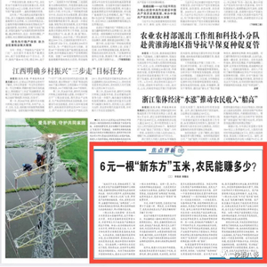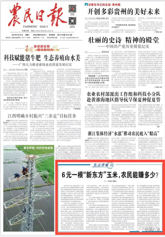 6月20日,《农民日报》头版发布了《6元一根“新东方”玉米,农民能赚多少?》文章,其中提到东方甄选直播间“一根玉米6元钱”,提出“玉米价格高了,农民或者说农业生产者能多赚钱吗?多赚了多少钱?”的问题。#6元一根的新东方玉米农民能赚多少#登上了热搜第一。