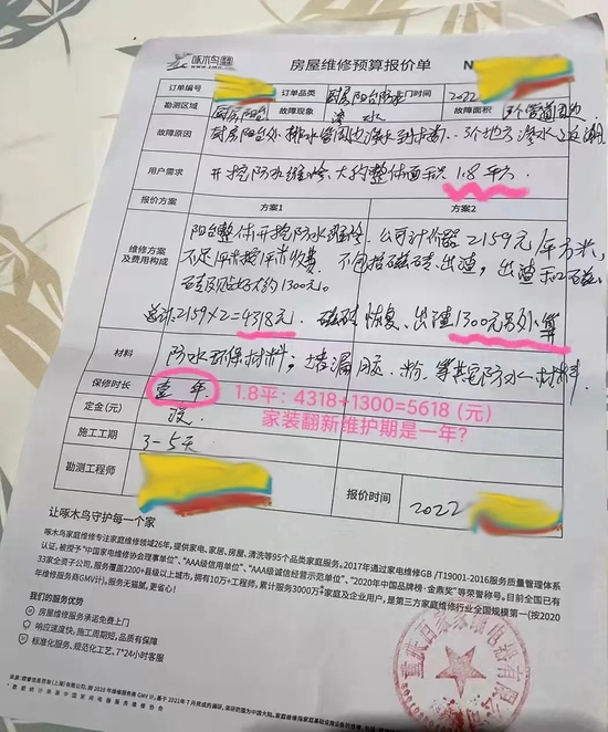 啄木鸟家庭维修被吐槽乱收费:防水报价近6000元,家电维修与官方售后报价天差地别