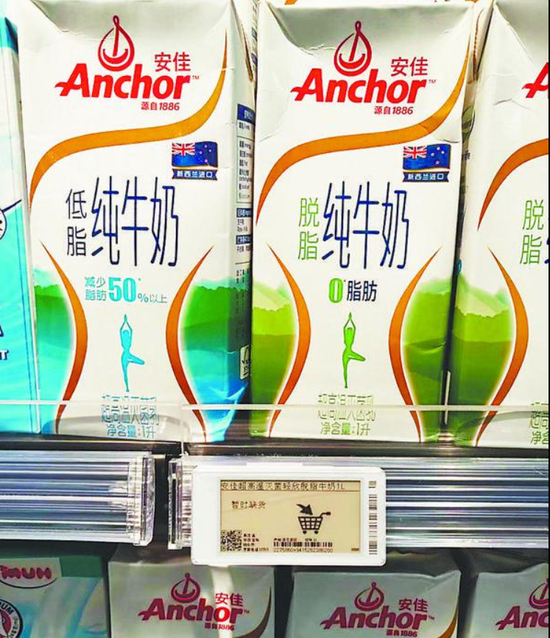 7月23日上午9时50分,记者来到万家 CITY 万象汇店。记者看到,该门店饮品区一款名为“安佳超高温灭菌轻欣脱脂牛奶(1L)”的价格牌显示“暂时缺货”,但货架上却摆放了该款牛奶。记者选购了一瓶,结账时小票单据显示其价格为19.9元。