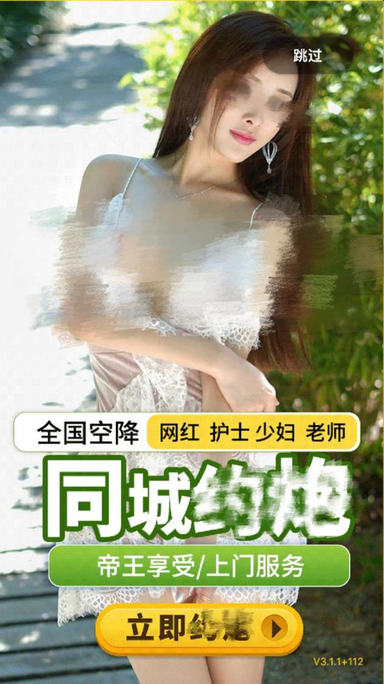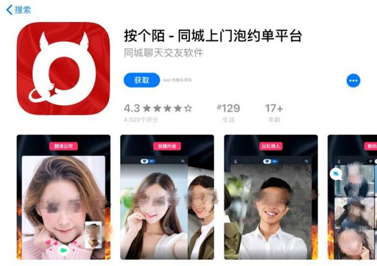 比如,一款App名叫“按个陌”,其推广文案中特意标注:同城上门泡约单平台,让人浮想联翩。