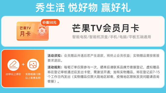 《消费者报道》留意到,当贝确实存在以晒单送礼品的行为。该产品的详情页信息显示,发布“20字以上评价+实拍视频/3张以上场景实拍”即可获得芒果TV会员月卡一张,不禁难免令人怀疑其好评的真实性。