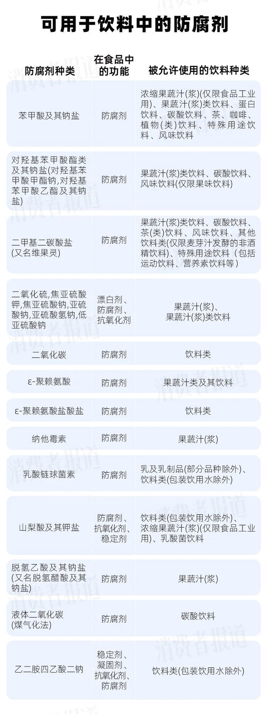 饮料可用防腐剂包括二氧化碳等20余种