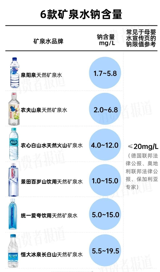 首先,市面上大部分矿泉水其实都能满足“低钠”的要求,我们完全没有必要为了低钠去选择母婴水。“低钠”作为母婴水的主宣传点之一也较为牵强。