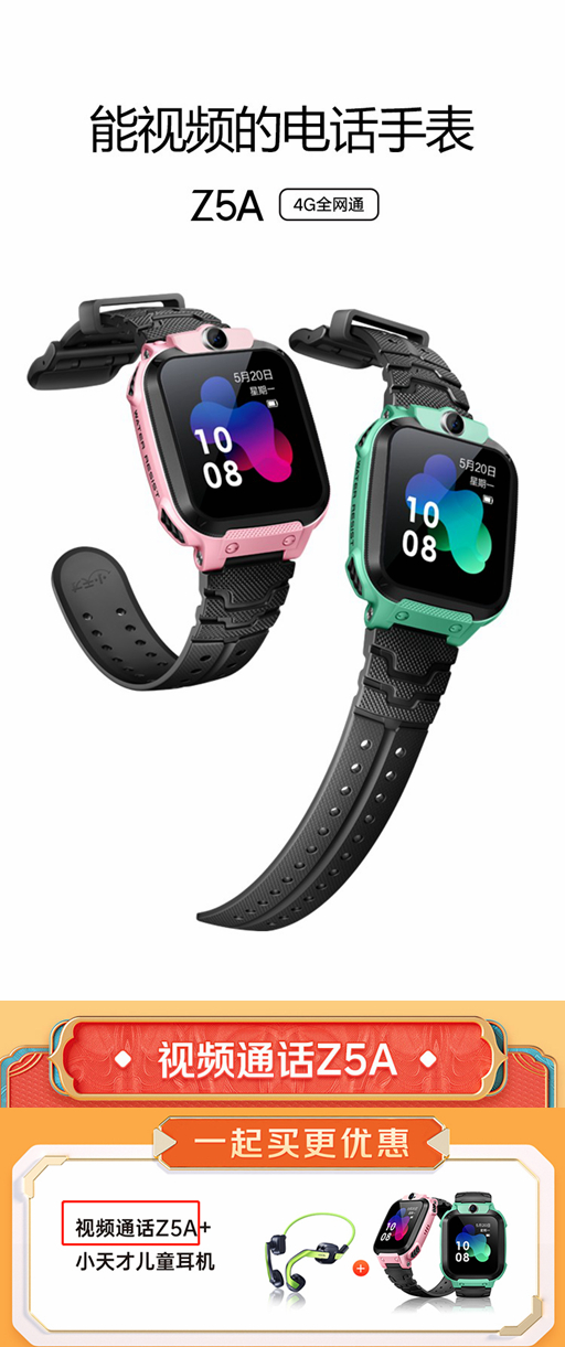 《消费者报道》留意到,在小天才Z5A儿童电话手表的介绍及宣传中,以视频通话功能为主要卖点,产品同时多次强调“能视频的电话手表,实时高清视频通话”。