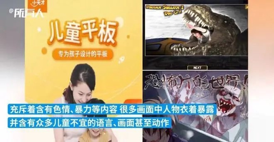 今年7月,小天才儿童平板电脑被媒体曝光其应用商店中可以搜索并下载大量含有血腥、暴力、犯罪内容的游戏和广告。据报道,消费者在购买小天才T1儿童平板电脑后发现,在其应用商店中可以搜索并下载大量含有血腥、暴力、犯罪内容的游戏和广告,在一些漫画App中还掺杂着不同程度的少儿不宜的文字和画面。