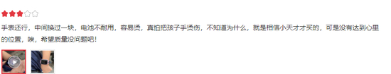 同时还有部分消费者反映电话手表续航差、卡顿等问题:“每天都要充一两次”“太费电”“电池太烂了”“系统很慢,经常卡住不动”。