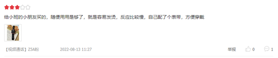 周女士的遭遇并非个例,《消费者报道》根据周女士提供的购买链接查询时,发现不少消费者反馈了类似的情况。本刊留意到,仅近段时间以来,就有不少消费者表达了对该款电话手表存在视频通话易发烫中断、续航差、卡顿等问题的不满。而向客服反馈后,则被告知属于正常现象。